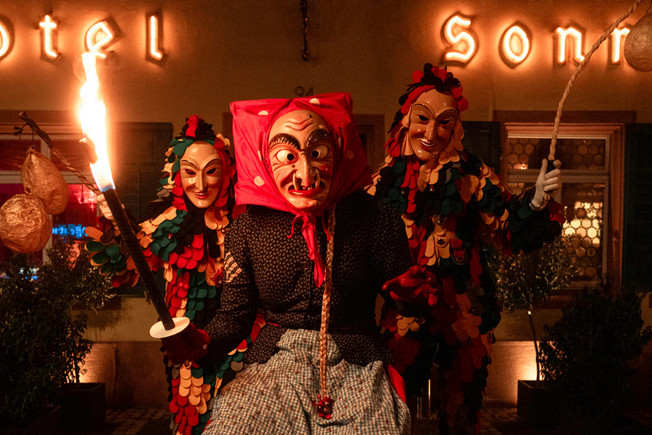 Am Fasentmändig wird es in Offenburg traditionell – die Offenburger Fasent hat eine lange Tradition von Haus- und Fasentsbällen. So ist es kein Zufall, dass auch unsere Hexeneltern Karl und Pauline Vollmer erstmals beim Preismaskenball des Karnevalvereins Offenburg 1933 mit künstlerischem Geschick die Maske der „Offenburger Hexe“ zeigten. Wenn auch damals noch eine Stramin-Altweiber-Gazemaske mit Pappmaché und Glaserkitt umgeformt wurde, war dies der Ursprung der Maske, unserer heutigen Hexenmaske aus Lindenholz.