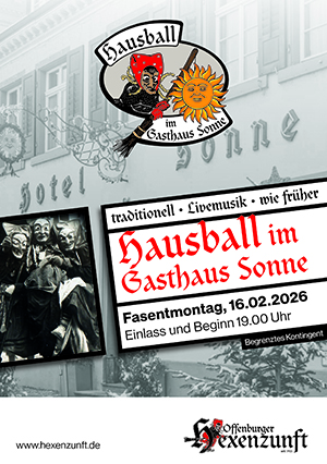 Auch weitere Bälle prägen die Historie der Hexenzunft. So wurde im Jahr 1948 erstmals nach Kriegsende durch die Besatzungsmacht die Genehmigung einer Ballveranstaltung erteilt. Der Hexenball war geboren. Dieser fand im Saalbau „Drei-König“ unter dem Motto „Auf der Walpurgisnacht“ statt. Die Gäste brachten Speis und Trank selbst mit. Der Ball wurde zu einem Riesenerfolg und ist der Ursprung des heutigen Hexenballs. Eine Veranstaltung, die unsere Gäste von nah und fern Jahr für Jahr begeistert. Hinzu kamen unzählige Hausbälle im traditionsreichen Offenburger Hotel & Gasthaus Sonne. Diese lange Historie von Bällen war auch der Grund, warum sich die Offenburger Hexenzunft gemeinsam mit den Wirtsleuten des Gasthauses Sonne, Tobias und Sarah Schewe, ein neues Veranstaltungskonzept ausgedacht haben, um diese alte Tradition wieder aufleben zu lassen.